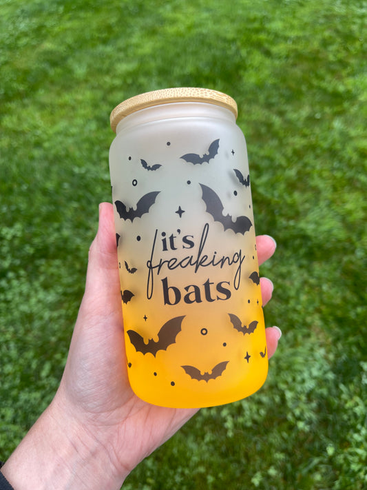 It's freakin bats - frosted beer can with straw and bamboo lid