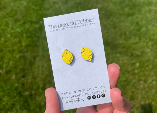 Lemons Fruit Lasercut Earrings - Handpainted Wood Studs
