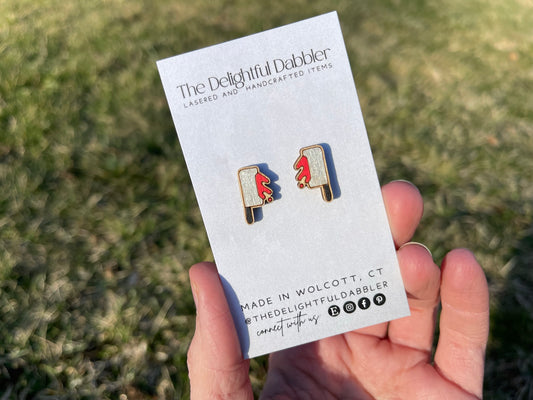 Pencil Earrings- Hand painted Wood Studs