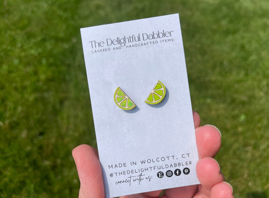 Lime Fruit Lasercut Earrings - Handpainted Wood Studs