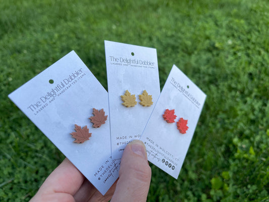 Matte Acrylic Maple Leaf Stud Earrings