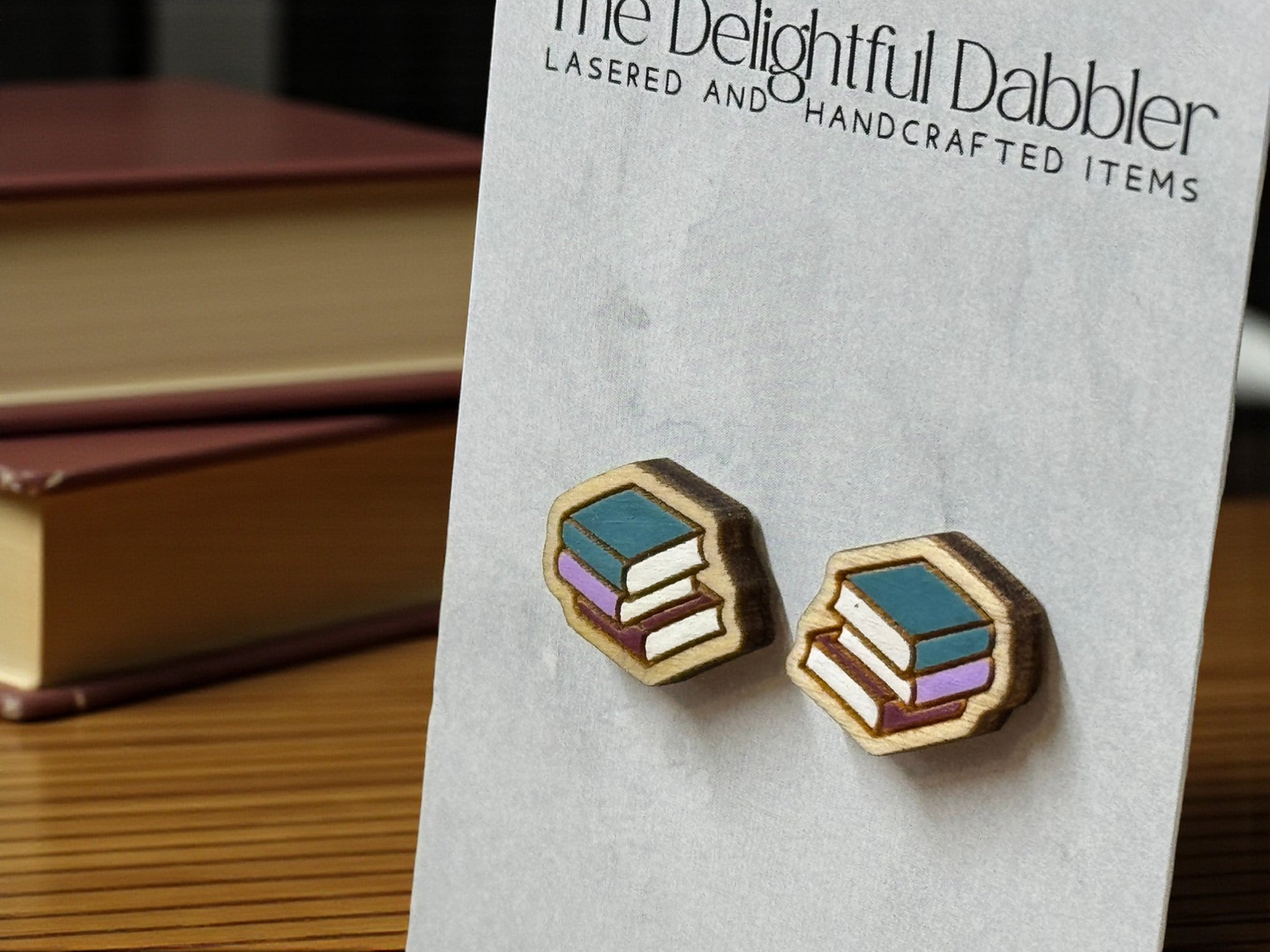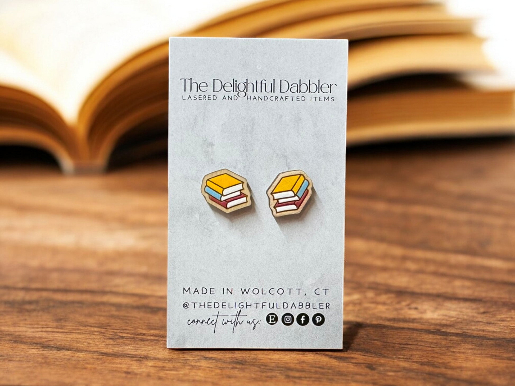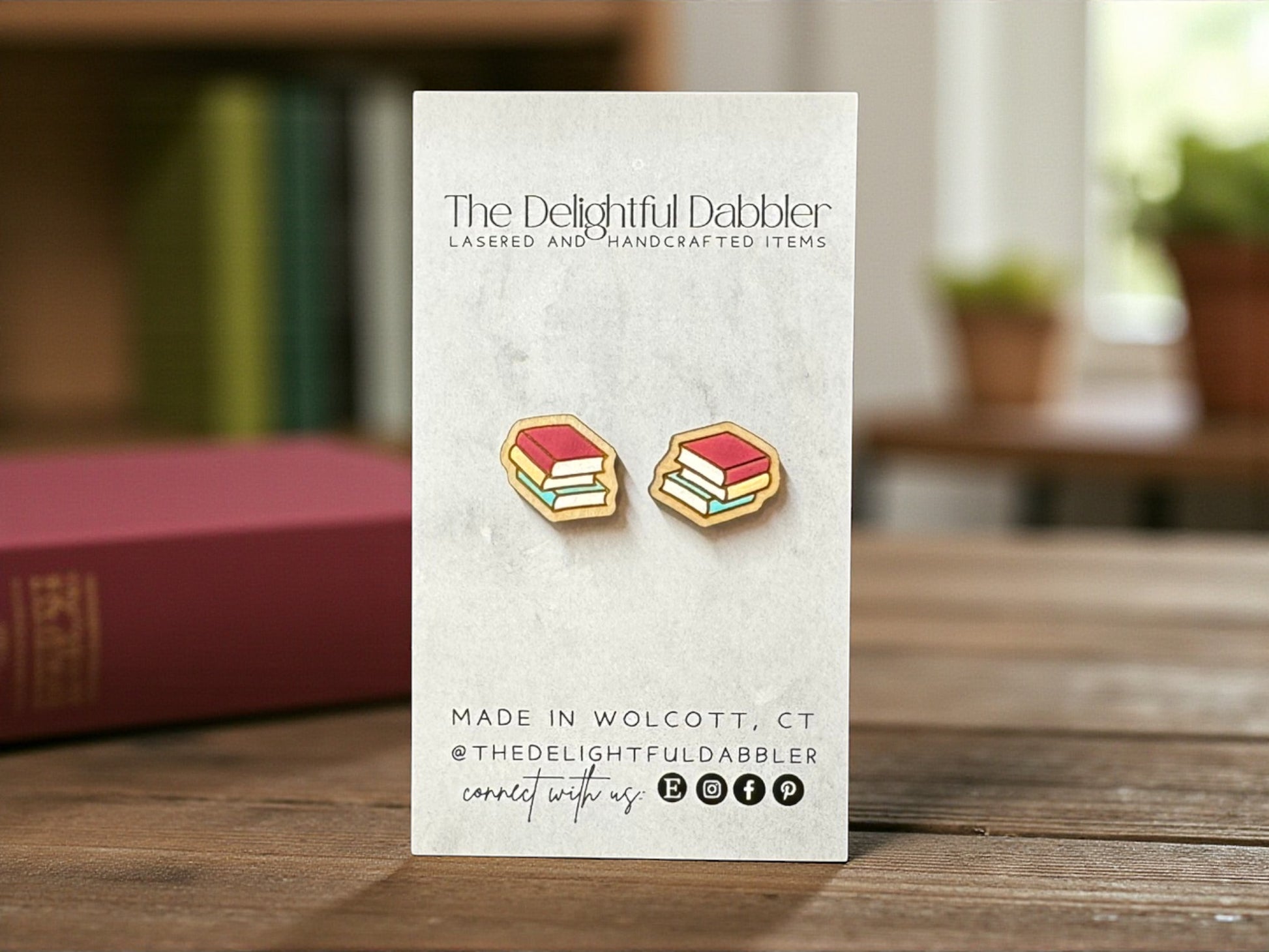 Book Stack Lasercut Wood Earrings - Winter Colors
