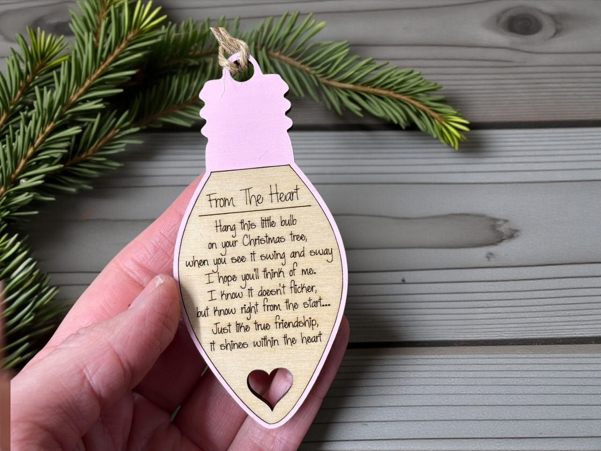 Friendship Lightbulb Ornament – Wooden Keepsake with Poem